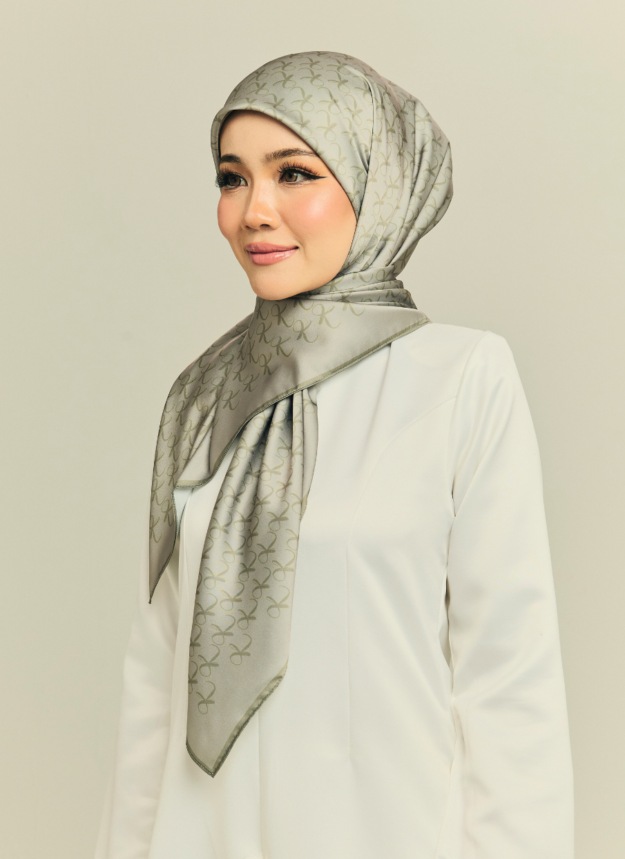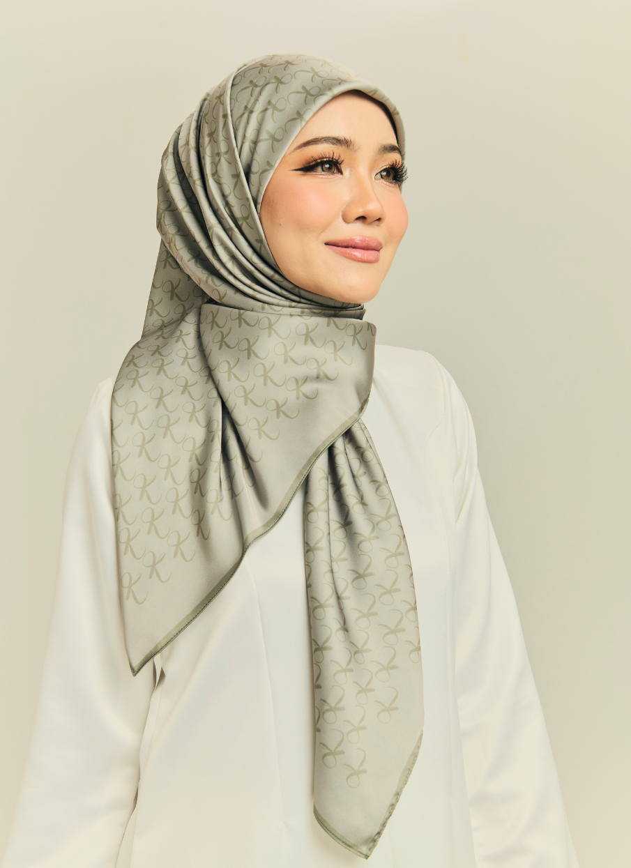 The Olive Green Monogram Hijab is part of KHATREENA’s iconic signature square scarf collection.