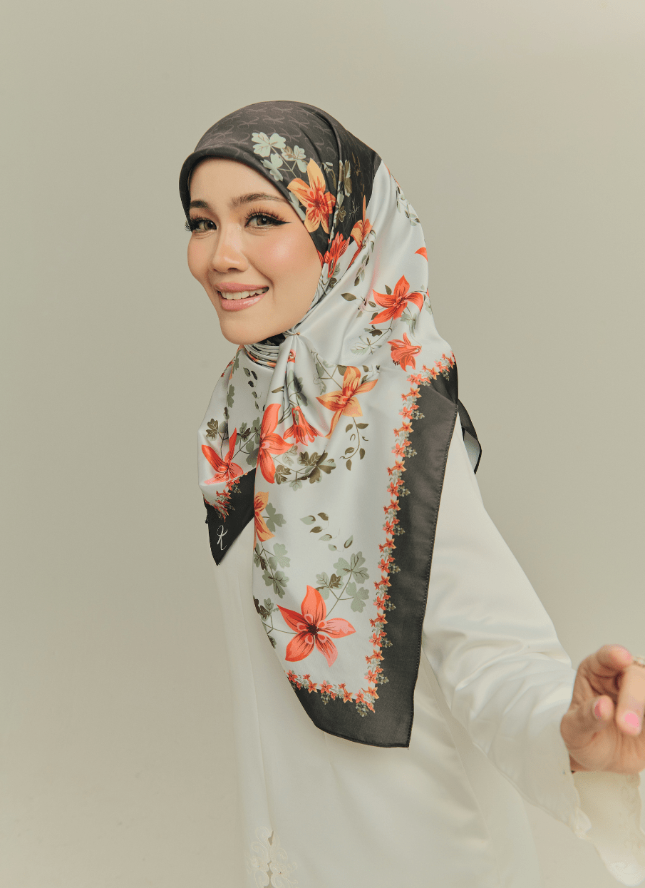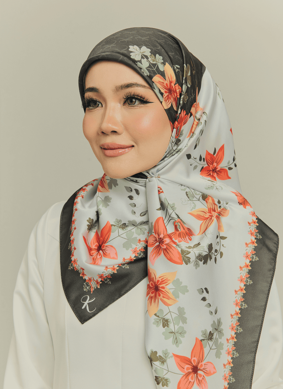 The Safira Hijab is inspired by the peacefulness of Islam. It is designed with flowers on a soft bed of turquoise which represents the harmonious unity amongst Muslims. The center of the hijab is decorated with the KHATREENA monogram and is positioned specifically to act as the awning as you wear it.